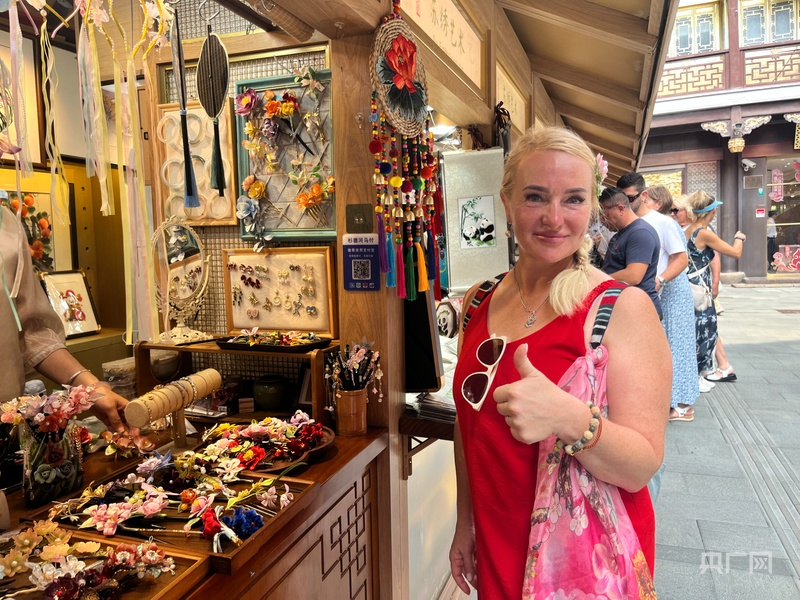 除了時尚消費的多元選擇,上海的特色消費更從“傳統(tǒng)好物”延伸至“科技潮品”,在滿足不同需求的同時,也向境外游客傳遞著中國文化的溫度與現(xiàn)代生活的便利?!拔屹I了很多中國茶葉,買了玉手串。我還買了各種絲綢制品,有漂亮的裙子、絲巾,還有一條可以和媽媽一起使用的絲綢毯子?!倍砹_斯游客艾琳娜的行李箱里,裝滿了頗具中國風的優(yōu)質(zhì)商品,這些都是她眼中“最有中國味道的伴手禮”。