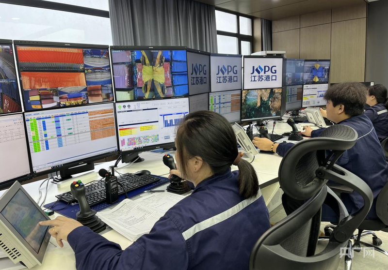 工作人員遠程操作集裝箱(央廣網記者 欒永勝 攝)