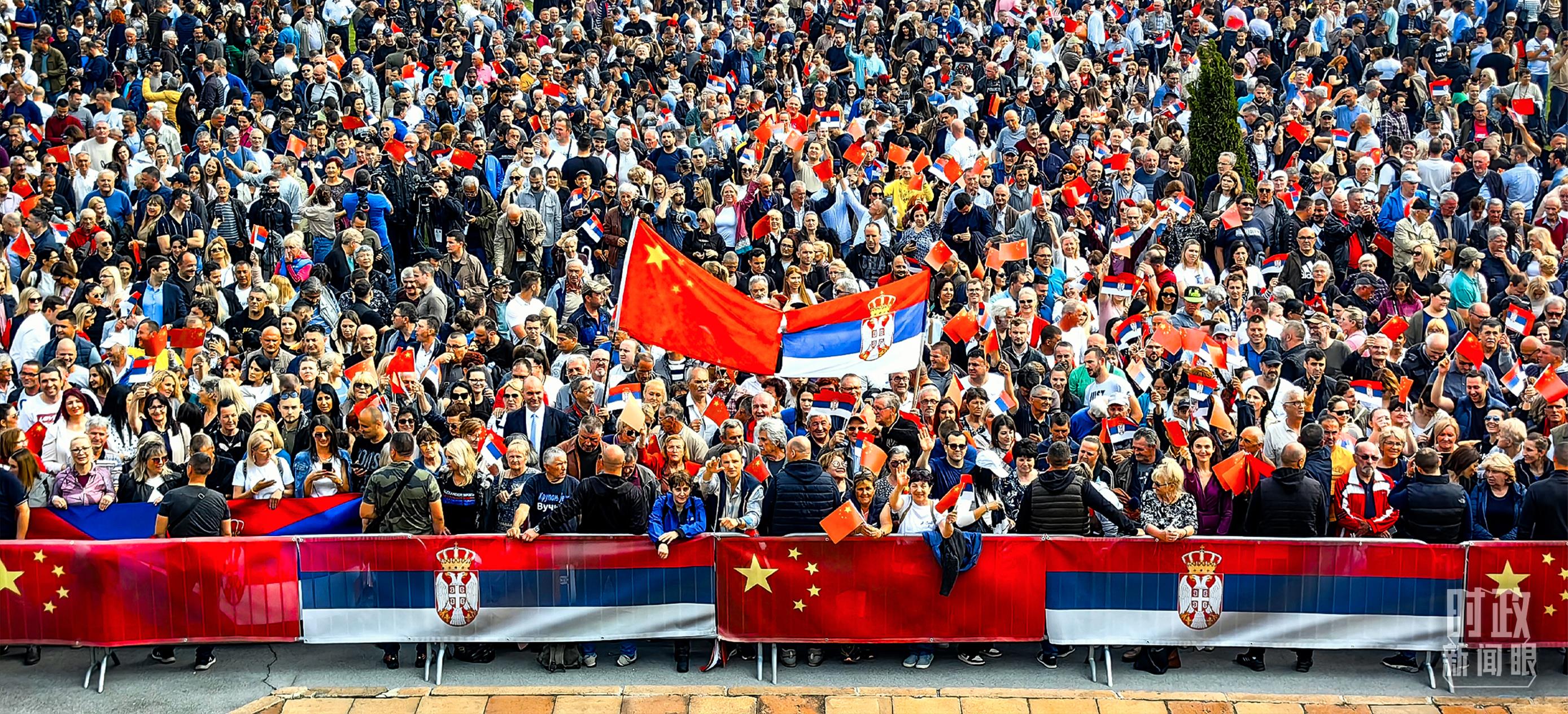 一萬五千名塞爾維亞民眾齊聚塞爾維亞大廈廣場,熱烈歡迎習(xí)主席到訪。(總臺央視記者段德文拍攝)