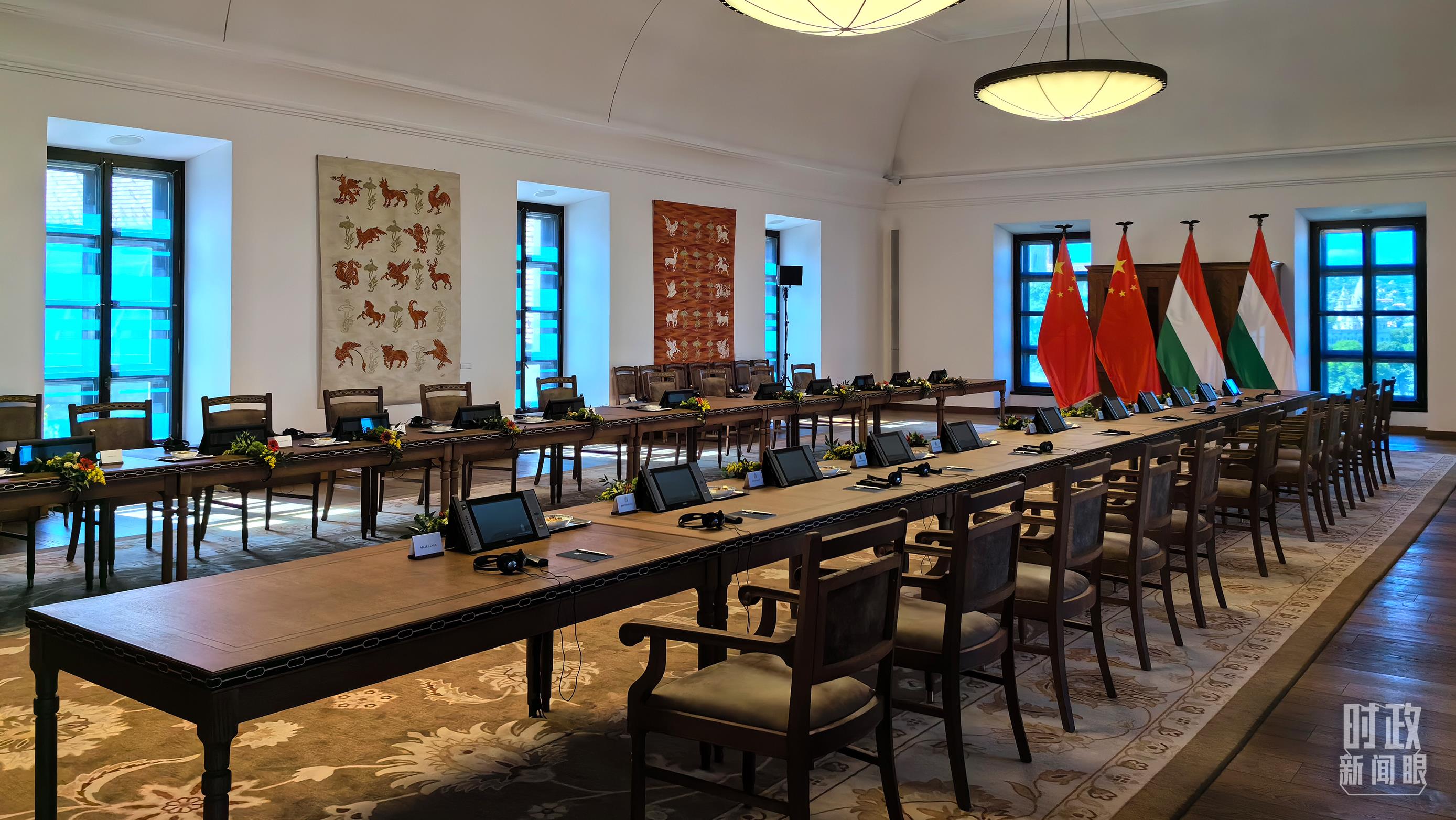 5月9日,習(xí)主席同匈牙利總理歐爾班在這里舉行會談。這是會談開始前的現(xiàn)場。(總臺央視記者陸泓宇拍攝)