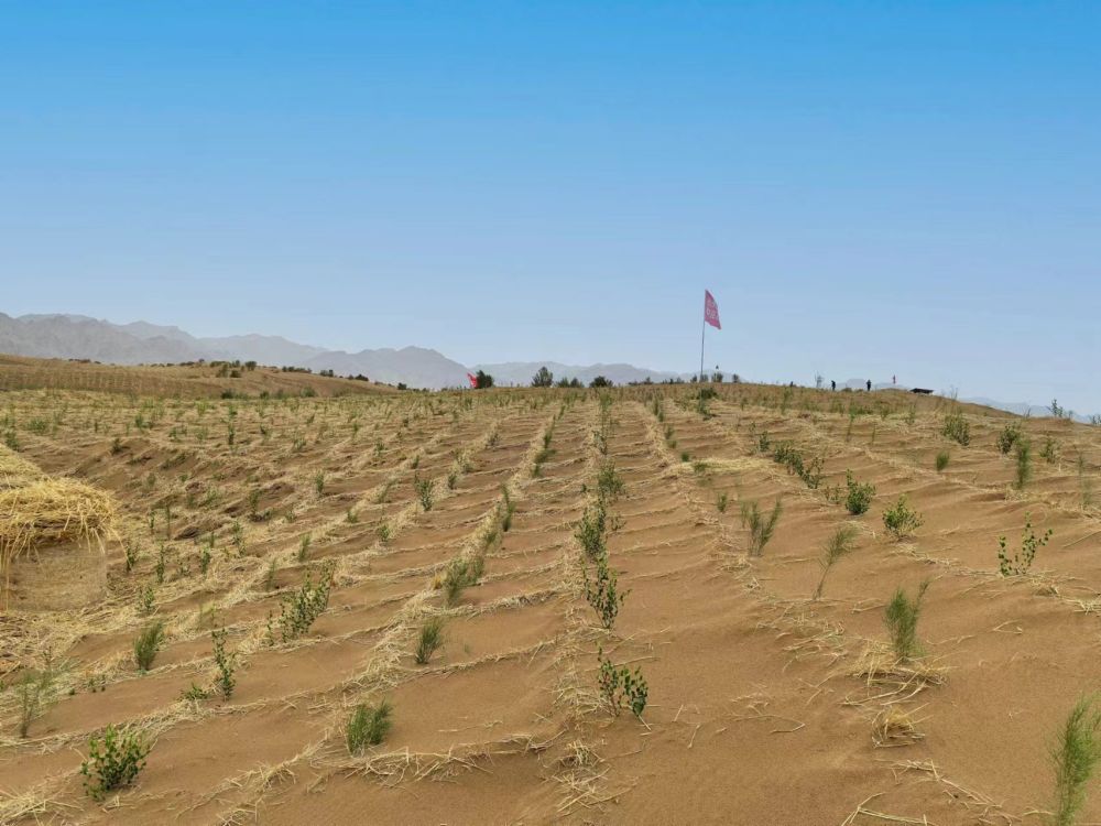 “趕在秋天前扎好草方格,到時就可以種苗了。今年以來我們防沙治沙都是機械化操作,作業(yè)速度比以前純?nèi)斯ぬ岣吡?倍多?!惫茏o中心主任杜永軍介紹,烏拉特后旗造林窗口期短,夏季高達40攝氏度的地表溫度會將幼苗曬死,冬季幾場大風就會讓樹苗被流沙掩埋,只有春夏交接的一個半月和秋季一個月適合種苗。