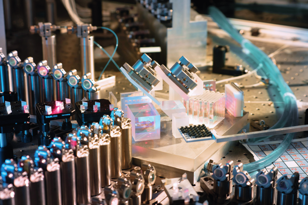 在中國科學(xué)技術(shù)大學(xué)拍攝的用于“九章三號(hào)”實(shí)驗(yàn)的光學(xué)干涉儀(2023 年 10 月 15 日攝) 中國科學(xué)技術(shù)大學(xué)供圖