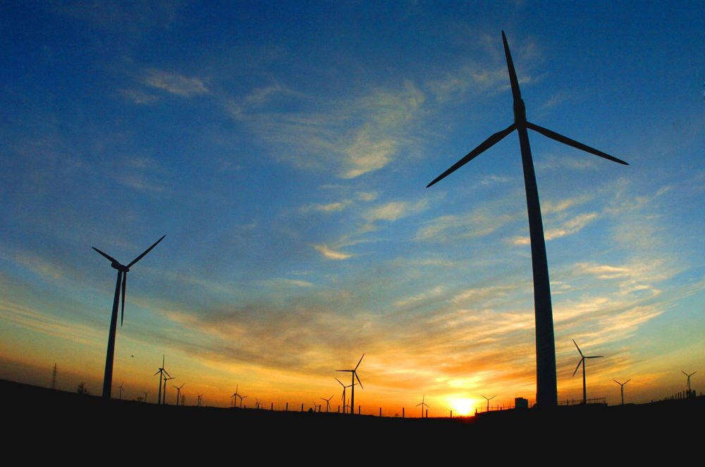 2005年,吉林省白城市通榆縣境內(nèi)幾十部風力發(fā)電機組在工作。新華社發(fā)