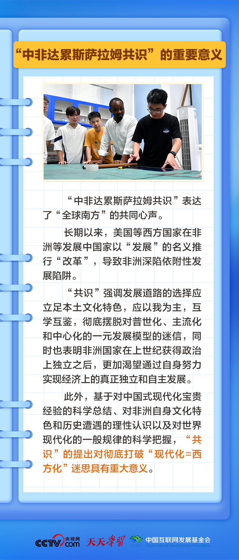 “中非達(dá)累斯薩拉姆共識”是在怎樣的背景下形成的?這一共識的核心內(nèi)容有哪些?習(xí)主席為何在復(fù)信中提到這一共識?央視網(wǎng)《天天學(xué)習(xí)》欄目推出學(xué)習(xí)筆記,與您一起學(xué)習(xí)、研讀。