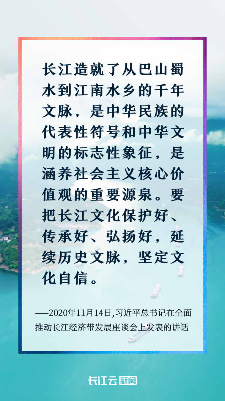 長江之水萬古奔流,千年文脈生生不息。黨的十八大以來,習(xí)近平總書記高度重視長江文化保護(hù)傳承弘揚(yáng),先后發(fā)表一系列重要講話,作出一系列重要指示批示,強(qiáng)調(diào)“要把長江文化保護(hù)好、傳承好、弘揚(yáng)好,延續(xù)歷史文脈,堅(jiān)定文化自信”。