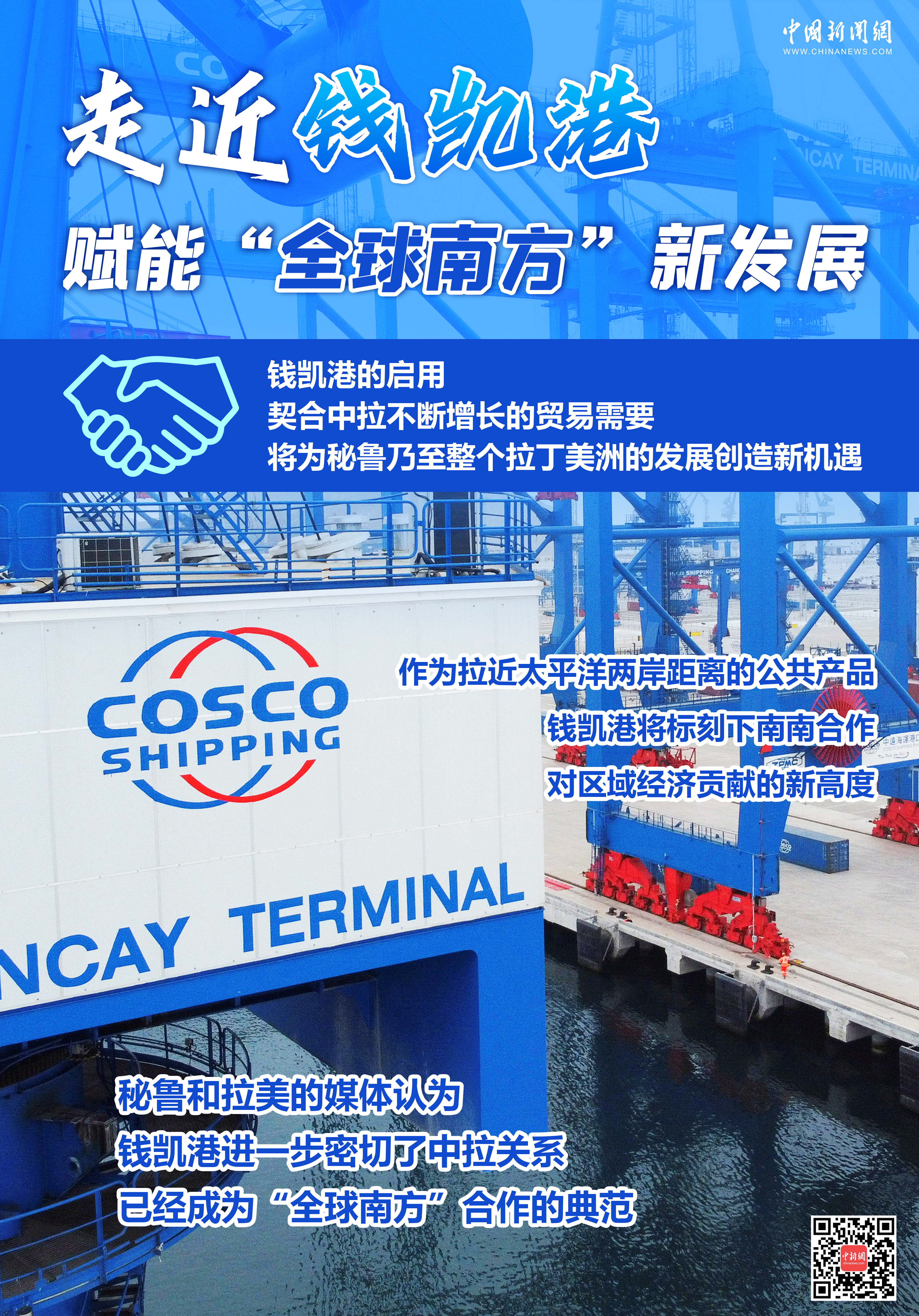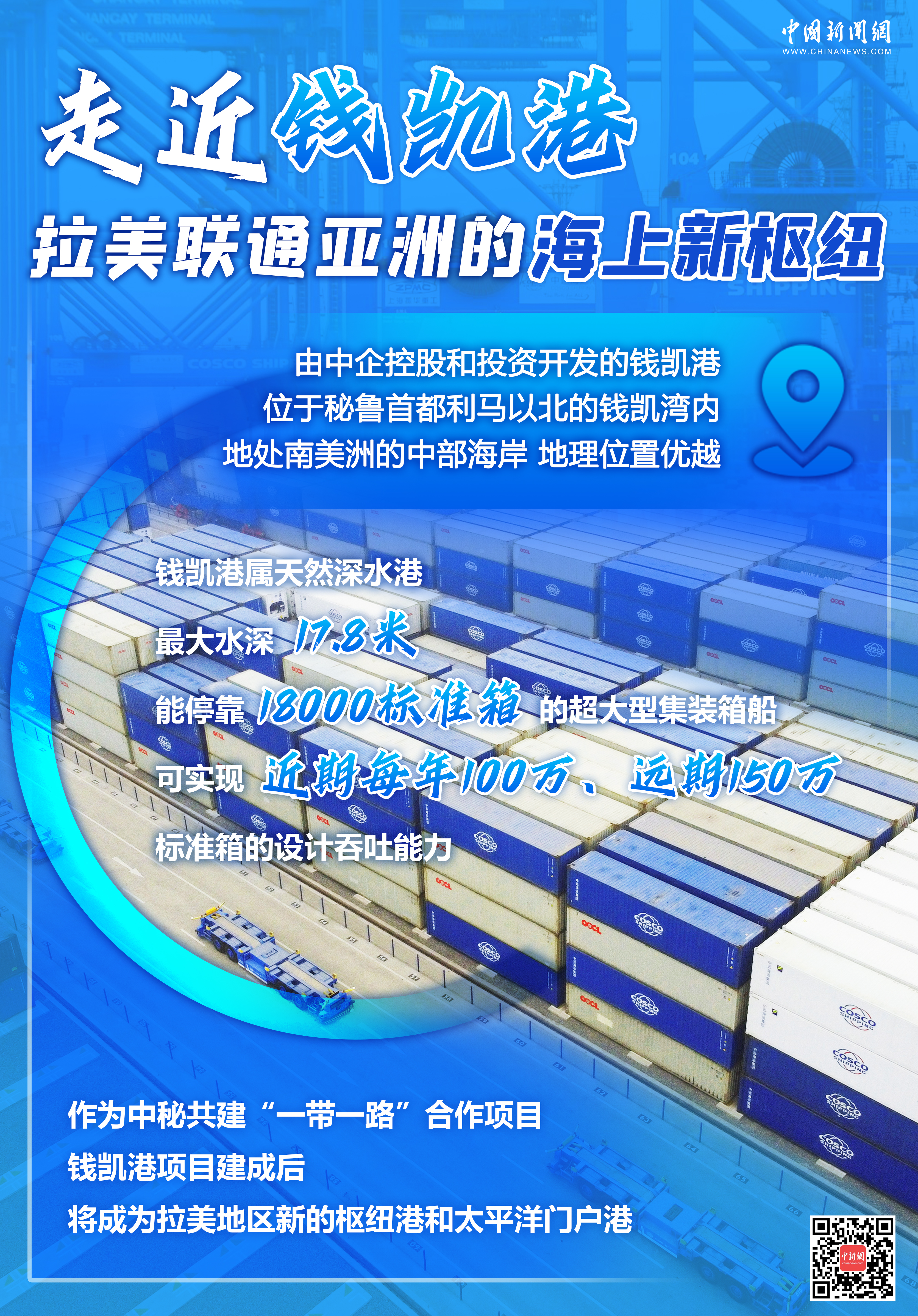 錢(qián)凱港項(xiàng)目是中國(guó)和秘魯共建“一帶一路”合作項(xiàng)目,建成后將成為拉美地區(qū)新的樞紐港和太平洋門(mén)戶(hù)港,可大幅縮短秘魯?shù)絹喼薜闹焙綍r(shí)間。