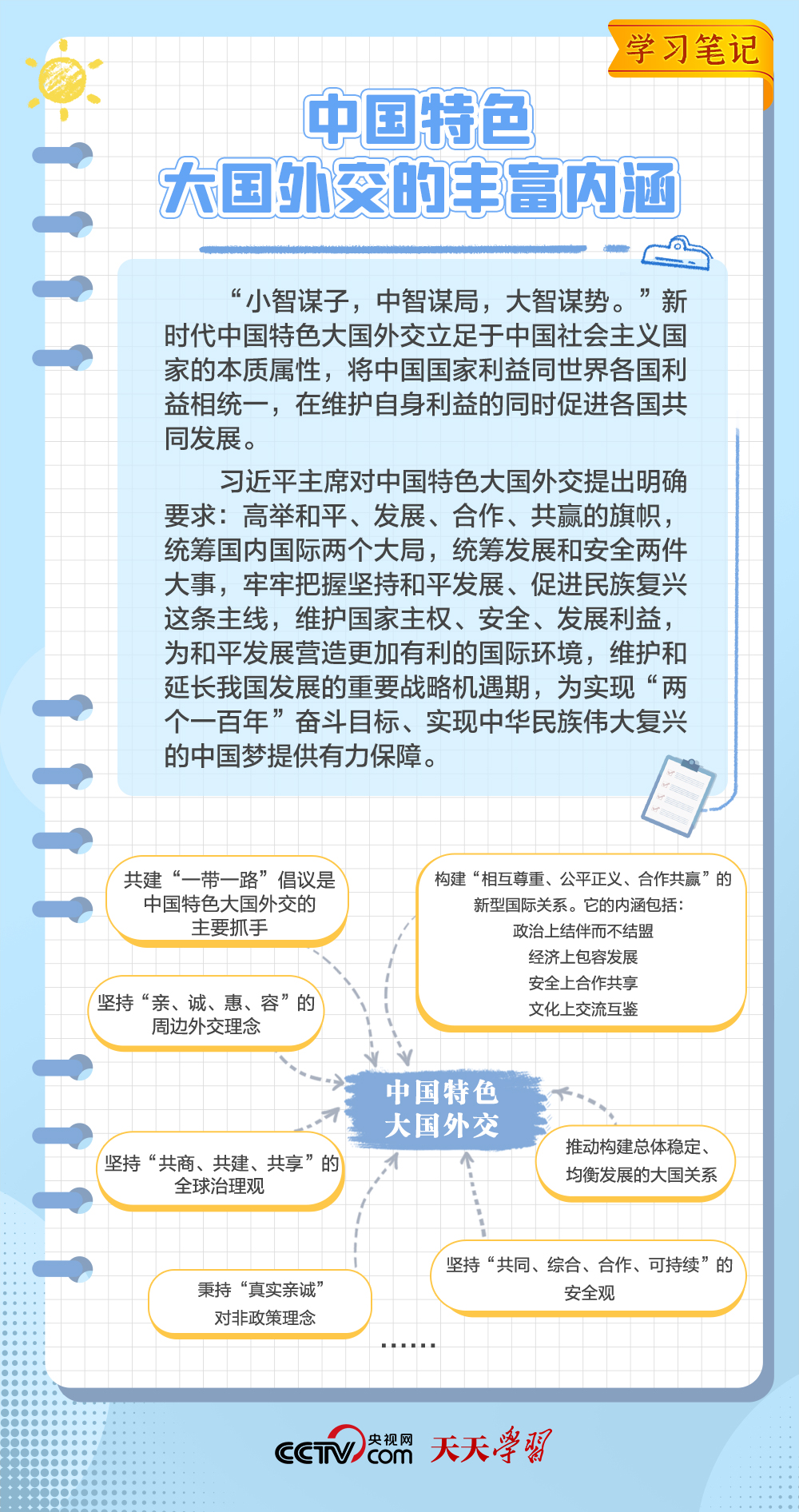 天天學(xué)習(xí)2014年11月,習(xí)近平總書(shū)記在中央外事工作會(huì)議上指出,中國(guó)必須有自己特色的大國(guó)外交。