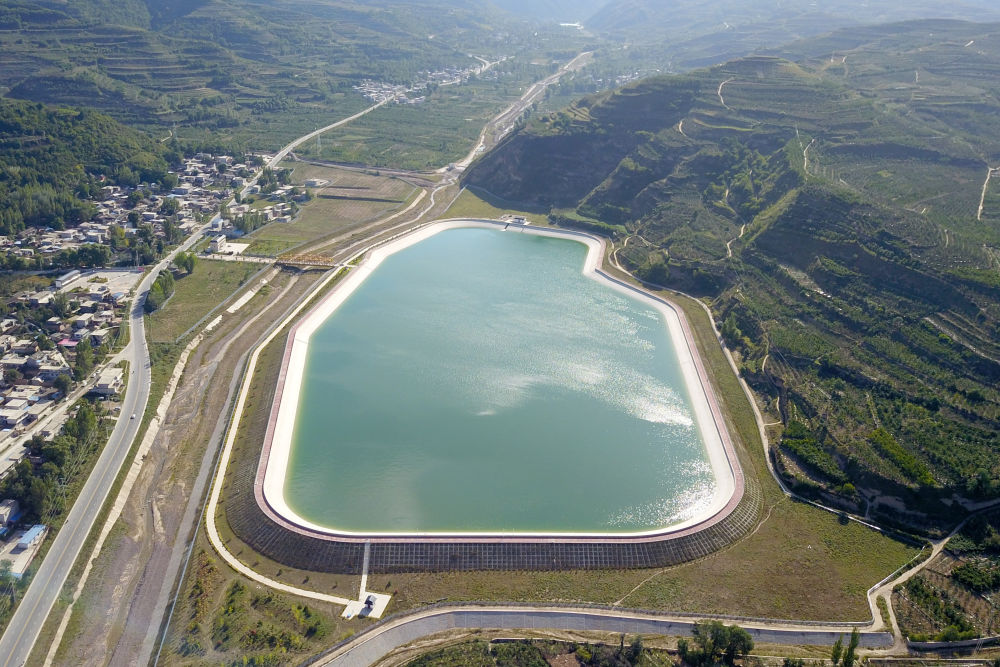 這是2021年9月8日在甘肅省天水市拍攝的引洮供水工程楊家灣調(diào)蓄水池(無人機(jī)照片)。新華社記者 范培珅 攝