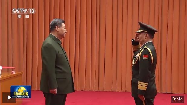 上午10時許,晉銜儀式在莊嚴的中華人民共和國國歌聲中開始。中央軍委副主席張又俠宣讀了中央軍委主席習近平簽署的晉升上將軍銜命令。中央軍委副主席何衛(wèi)東主持晉銜儀式。