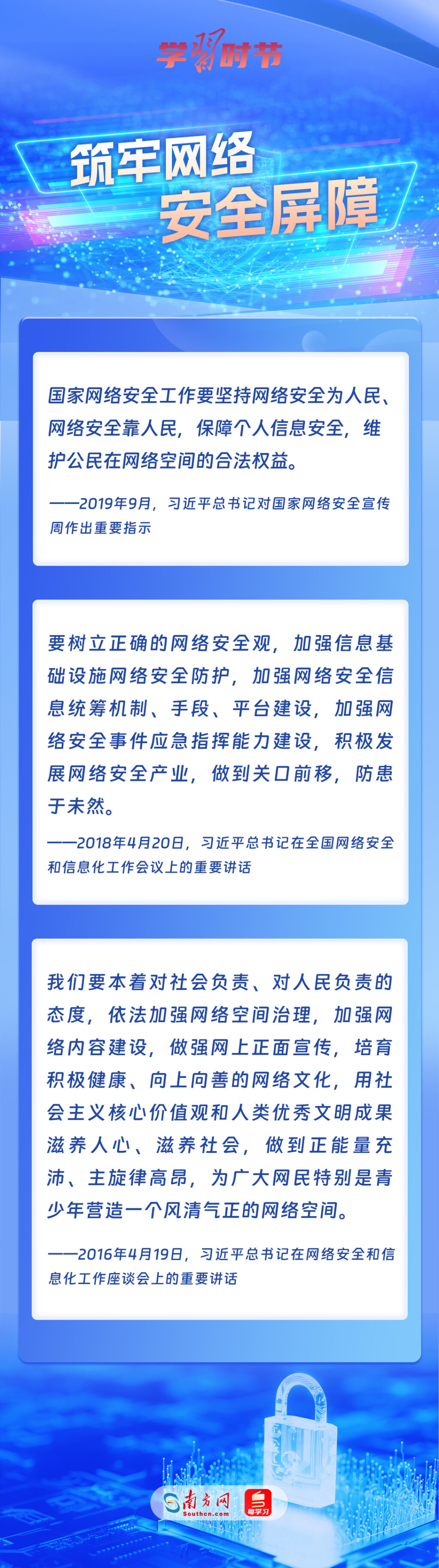 黨的十八大以來,習近平總書記從信息化發(fā)展大勢和國內國際大局出發(fā),就網(wǎng)絡安全和信息化工作提出一系列具有開創(chuàng)性意義的新理念新思想新戰(zhàn)略,形成了習近平總書記關于網(wǎng)絡強國的重要思想。其中,有不少生動形象的表述,深入人心,發(fā)人深省,讓我們一起學習。