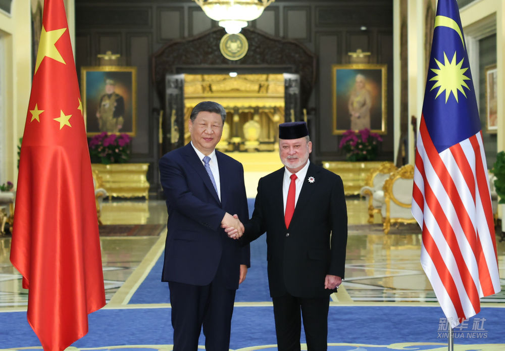 4月16日上午,馬來西亞最高元首易卜拉欣在馬來西亞國(guó)家王宮同中國(guó)國(guó)家主席習(xí)近平舉行會(huì)見。