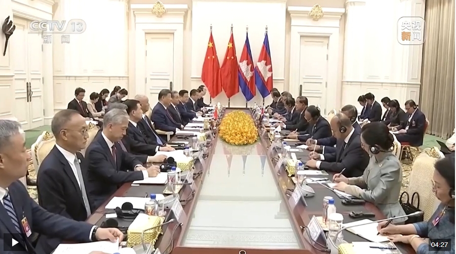 習(xí)近平指出,中柬兩國是友好鄰邦,更是鐵桿朋友。構(gòu)建中柬命運(yùn)共同體是歷史的選擇、人民的選擇。當(dāng)前,中柬兩國都處在國家發(fā)展的關(guān)鍵階段,雙方要心系人民福祉,胸懷人類進(jìn)步,在推進(jìn)各自現(xiàn)代化進(jìn)程中,為構(gòu)建人類命運(yùn)共同體樹立典范,攜手做世界百年變局中的和平力量、穩(wěn)定力量、進(jìn)步力量。