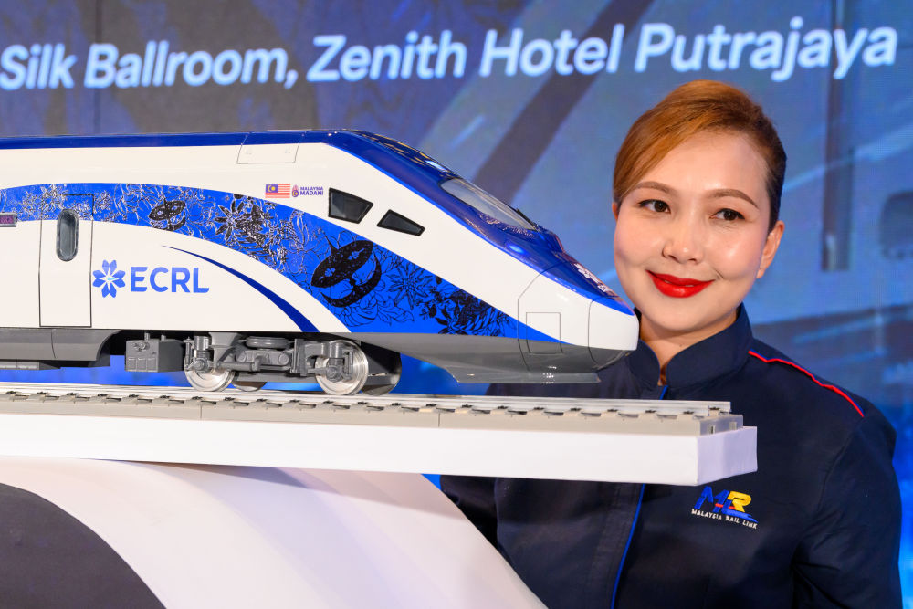 2024年12月18日,在馬來西亞普特拉賈亞,模特與新的動(dòng)車組模型合影。新華社發(fā)(張紋綜 攝)