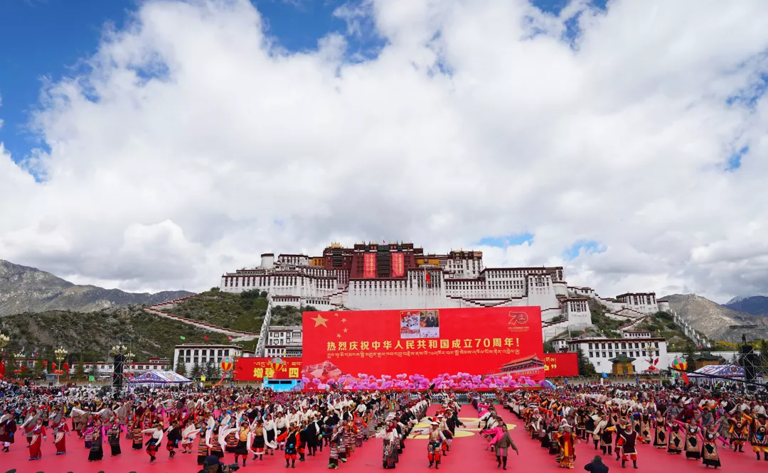 2019年9月29日上午,西藏自治區(qū)以千人鍋莊的形式,表達(dá)對(duì)黨的無限熱愛和對(duì)祖國(guó)母親的深深祝福。王淑 攝