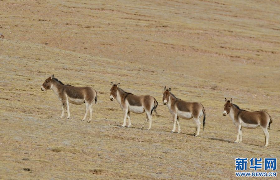 藏北高原上的藏野驢(1月15日攝)。新華社記者 沈虹冰 攝