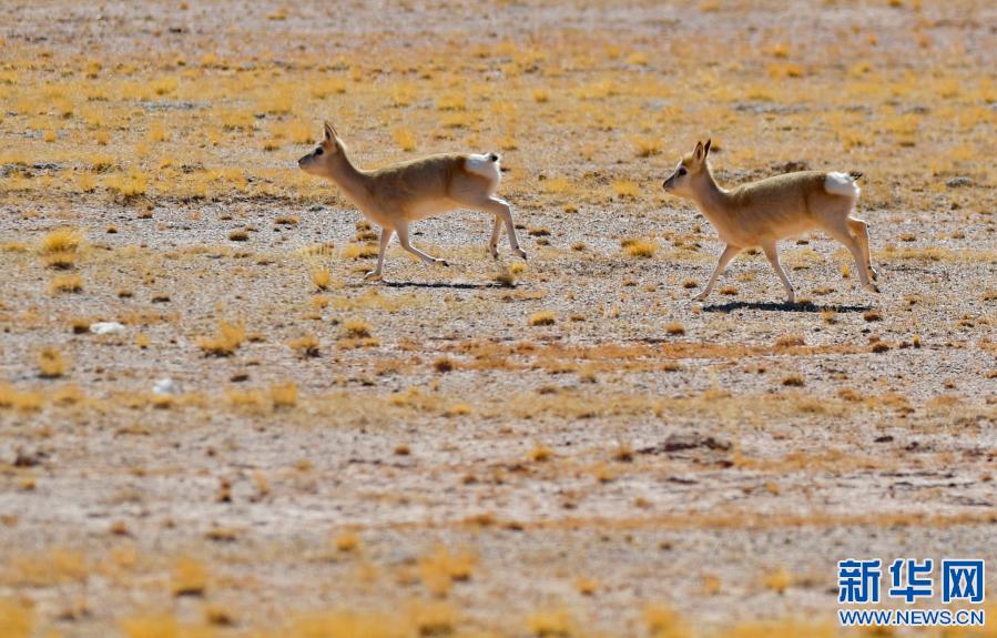 藏北高原上的藏原羚(1月15日攝)。新華社記者 沈虹冰 攝