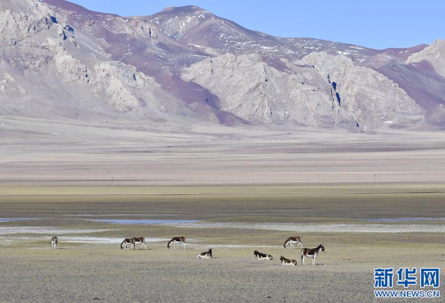 藏北高原上的藏野驢(1月16日攝)。新華社記者 張汝鋒 攝