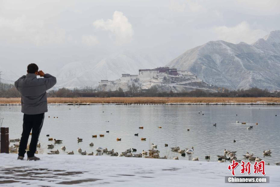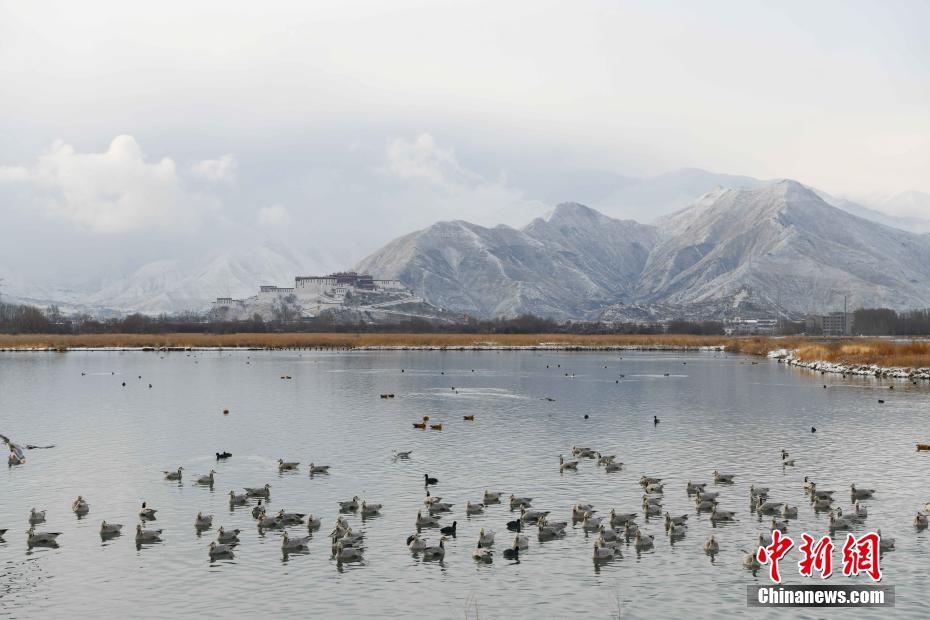 2月21日,從拉魯濕地遠眺布達拉宮。當日,西藏拉薩市迎來降雪,雪后的拉薩城區(qū)和周圍群山白雪皚皚,風(fēng)景如畫。 中新社記者 貢嘎來松 攝