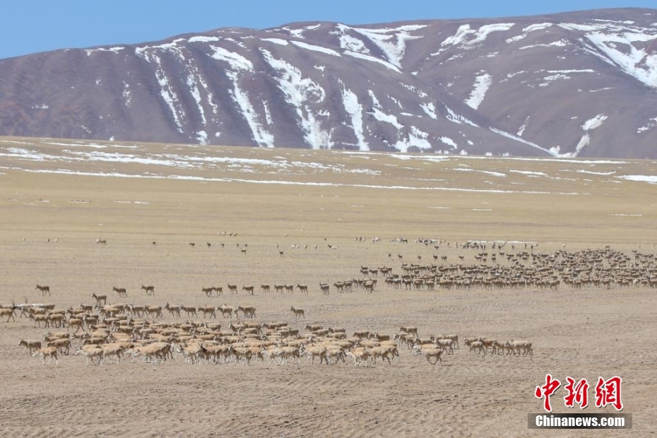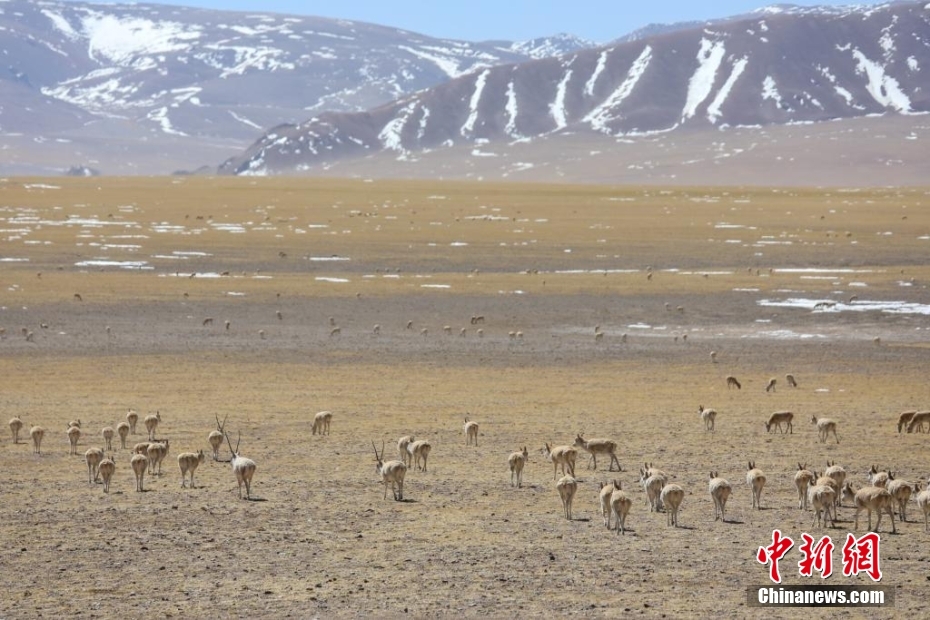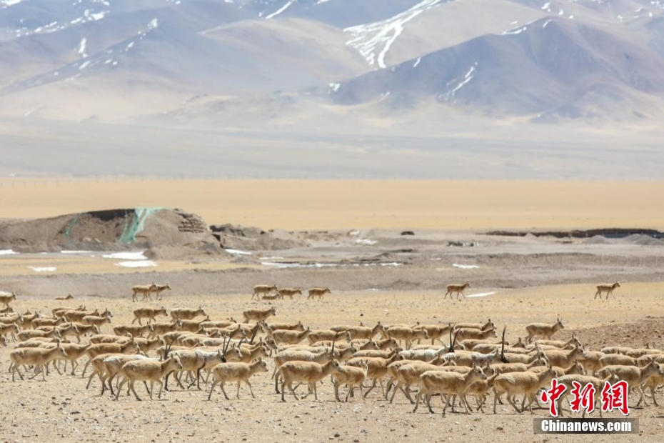 3月27日,西藏改則縣先遣鄉(xiāng)附近的藏羚羊種群。邊巴 攝