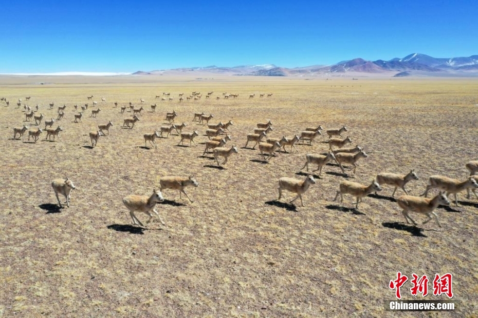 遠(yuǎn)看藏羚羊群移動,猶如“行軍”。索朗仁青 攝