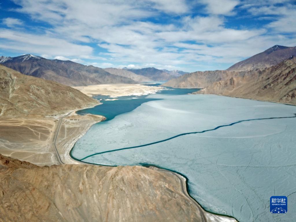 這是位于西藏自治區(qū)阿里地區(qū)改則縣的物瑪錯,湖水呈現出不同顏色(2022年4月12日攝)。新華社記者 姜帆 攝