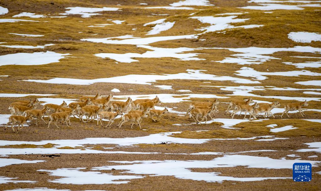 這是在羌塘國(guó)家級(jí)自然保護(hù)區(qū)那曲市雙湖縣區(qū)域內(nèi)拍攝到的藏羚羊(4月15日攝) 。新華社記者 姜帆 攝