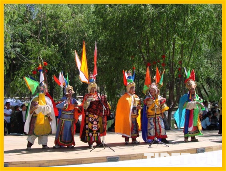 圖為山南雅隆扎西雪巴藏戲。藏戲是藏族傳統(tǒng)戲劇的杰出代表,有西藏白面具藏戲、藍(lán)面具藏戲,青海黃南藏戲,甘肅甘南藏戲,四川嘉絨藏戲、康巴藏戲,同時(shí)西藏還有門(mén)巴戲等眾多藏戲流派。目前,已有12個(gè)傳統(tǒng)戲劇類(lèi)非物質(zhì)文化遺產(chǎn)項(xiàng)目列入國(guó)家和西藏自治區(qū)級(jí)名錄。