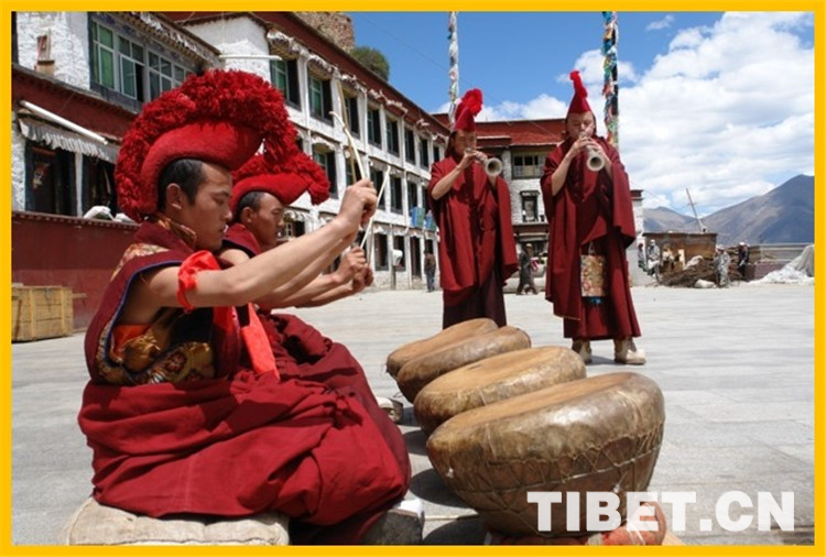 圖為直孔噶舉派音樂(lè)(佛教音樂(lè))。藏族傳統(tǒng)音樂(lè)特色鮮明,品種多樣,包括民間音樂(lè)、宗教音樂(lè)、宮廷音樂(lè)三大類(lèi)。目前,18個(gè)傳統(tǒng)音樂(lè)類(lèi)非物質(zhì)文化遺產(chǎn)項(xiàng)目被列入國(guó)家和西藏自治區(qū)級(jí)名錄。