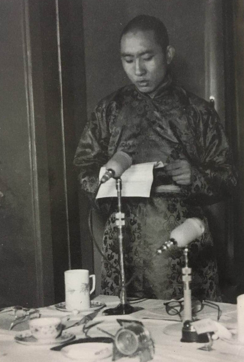 圖為1955年3月9日 十世班禪在國(guó)務(wù)院全體會(huì)議第七次會(huì)議上發(fā)言。翻拍自《班禪額爾德尼評(píng)傳》