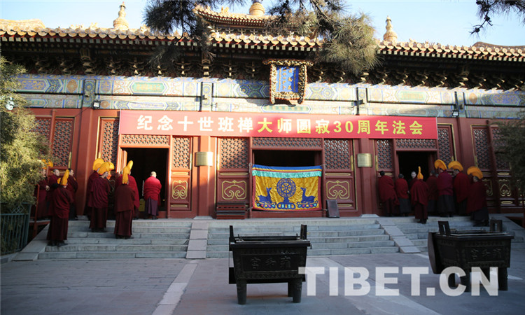 中國西藏網(wǎng)訊 1月28日,雍和宮舉行法會,紀念十世班禪大師圓寂30周年。圖為上午8時許,約80位教職人員、僧人誦禱經文,有序進入法輪殿。