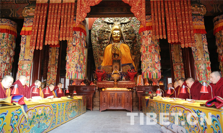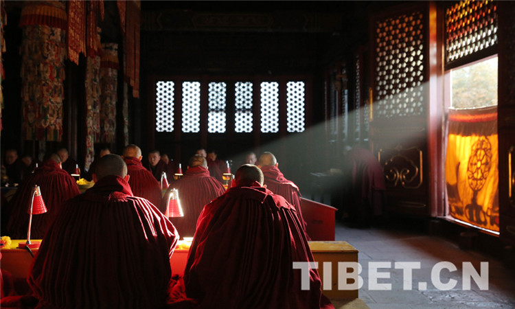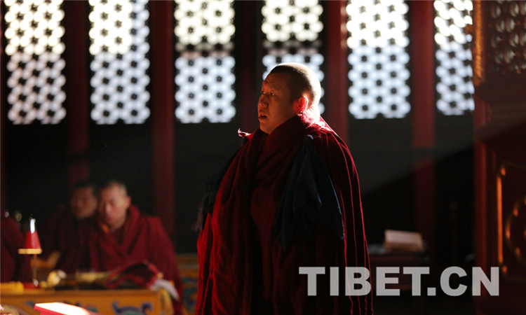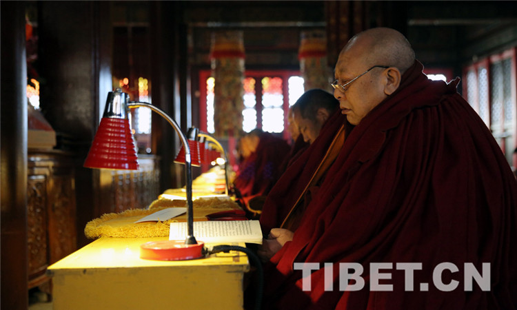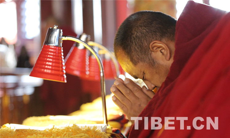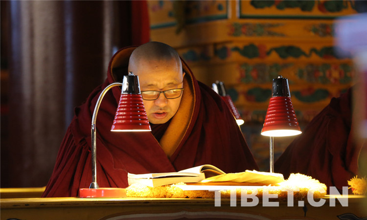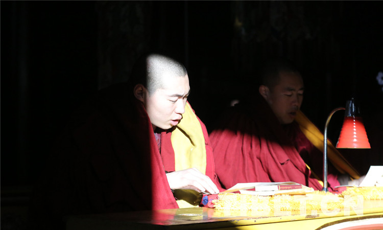 8時30分,法會開始,教職人員按既定儀軌,誦讀經文,虔誠祈禱,法會現(xiàn)場肅穆莊重。(中國西藏網(wǎng) 記者/楊月云)