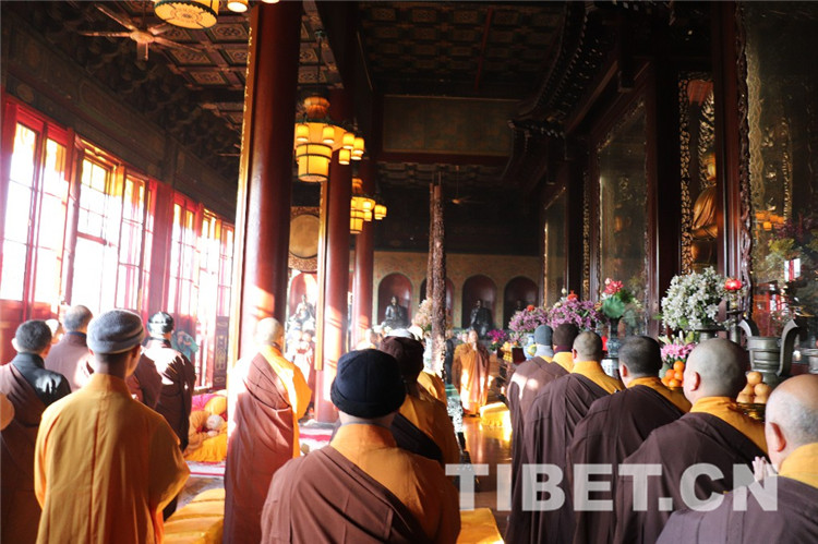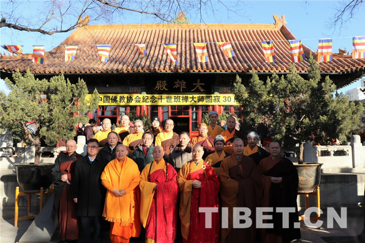 中國西藏網(wǎng)訊 今年適逢中國佛教協(xié)會名譽會長十世班禪大師圓寂30周年,1月28日上午9時,中國佛教協(xié)會及在京直屬寺院法師、工作人員、首都善信居士齊聚北京廣濟寺,隆重舉行紀念十世班禪大師圓寂30周年法會,深切緬懷十世班禪大師。法會禮請中國佛教協(xié)會演覺副會長、宗性副會長、祜巴等傣副會長主法,宏度副秘書長主持紀念儀式。三位法師拈香主法,帶領僧眾莊重誦經(jīng),圓滿完成法會儀軌。