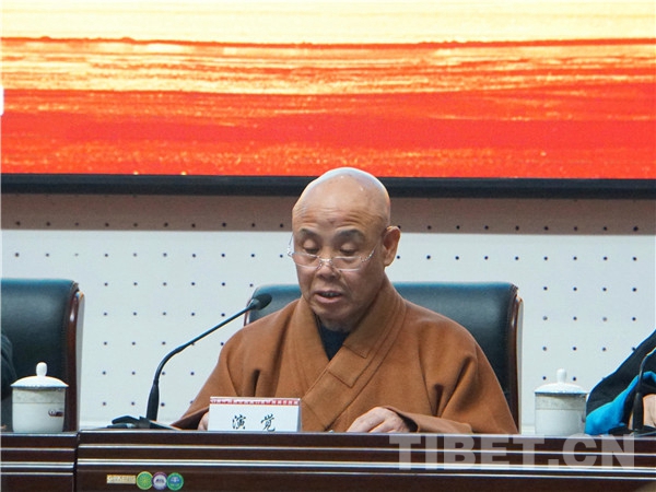 演覺法師總結了十世班禪大師的功績,他在發(fā)言中表示,要將對大師的懷念與學習轉化為推動藏傳佛教事業(yè)健康發(fā)展的動力,轉化為維護民族團結、祖國統(tǒng)一的堅定行動,轉化為莊嚴國土、利樂有情的篤實愿行。