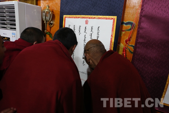 此次活動共征集書法作品80余幅,包含藏文、梵文、漢文、英文,其中藏文書法當(dāng)中又有烏金和烏梅體、草書體和古藏文體等多種書法類型,不僅展現(xiàn)了藏文書法精美多樣的字體和悠久歷史,而且表達了全寺僧眾深切緬懷大師的至真感情和銘記大師教誨,積極發(fā)揚藏傳佛教愛國愛教優(yōu)良傳統(tǒng)的堅定信心。(中國西藏網(wǎng) 記者/索朗加措、趙耀 圖片由扎什倫布寺寺管會提供)