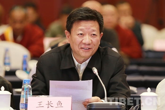 圖為中國藏語系高級佛學院黨組書記、常務副院長王長魚出席《中國西藏》雜志創(chuàng)刊30周年、中國西藏網(wǎng)創(chuàng)辦20周年座談會并致詞 攝影:許娜
