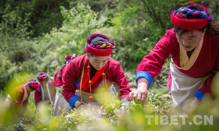 圖為勒鄉(xiāng)村民正在錯(cuò)那縣勒門巴民族鄉(xiāng)茶葉農(nóng)牧民專業(yè)合作社內(nèi)采摘茶葉 攝影:趙耀