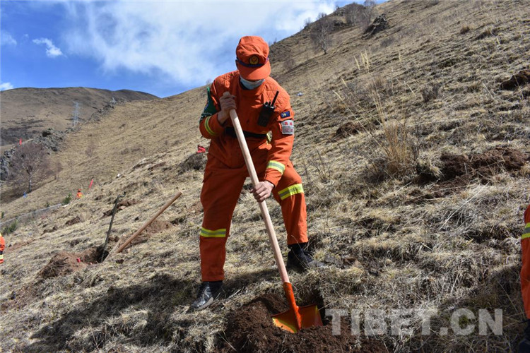 圖為昌都市森林消防支隊江達(dá)中隊積極參加駐地植樹活動