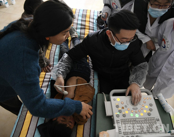 醫(yī)療隊(duì)和志愿者們不顧舟車勞頓和高原反應(yīng)的不適,認(rèn)真地對每一位前來篩查的小朋友進(jìn)行詳細(xì)的詢問和認(rèn)真的檢查。對于有疑似癥狀的患者則現(xiàn)場利用從北京帶來的先進(jìn)設(shè)備進(jìn)行彩超診斷,并耐心和每一位患者家屬進(jìn)行交流和講解,在每個工作細(xì)節(jié)上精益求精。