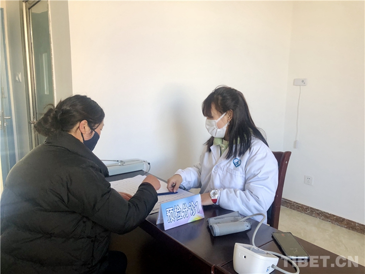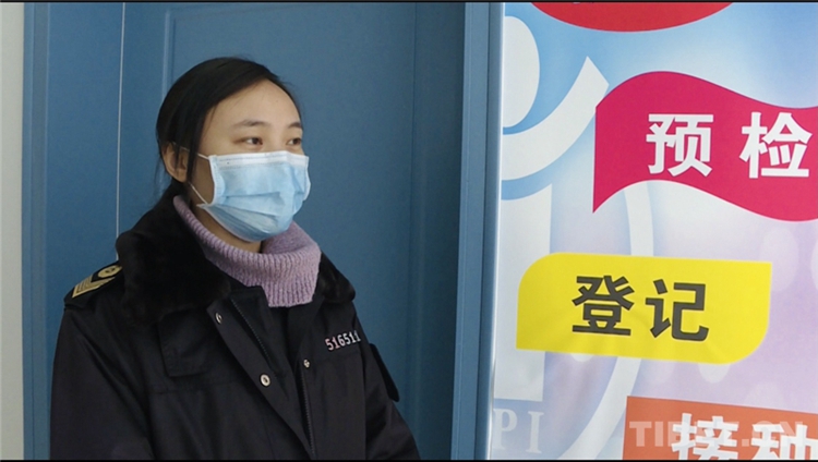 圖為爐霍縣相關(guān)工作人員李春燕介紹新冠肺炎疫苗接種有關(guān)情況