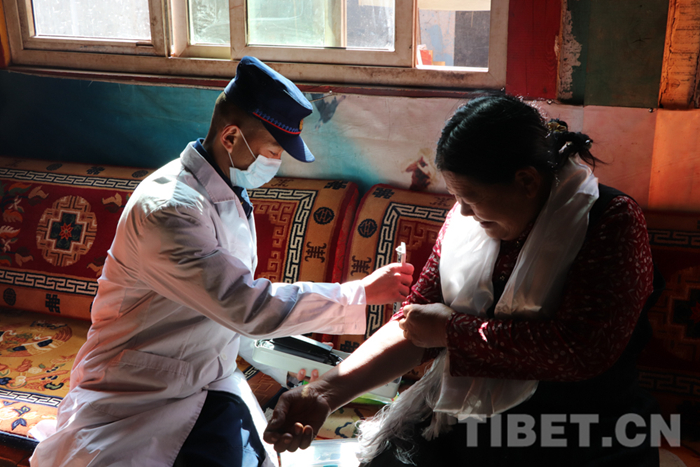 圖為卡若區(qū)森林消防中隊衛(wèi)生員了解困難群眾身體狀況