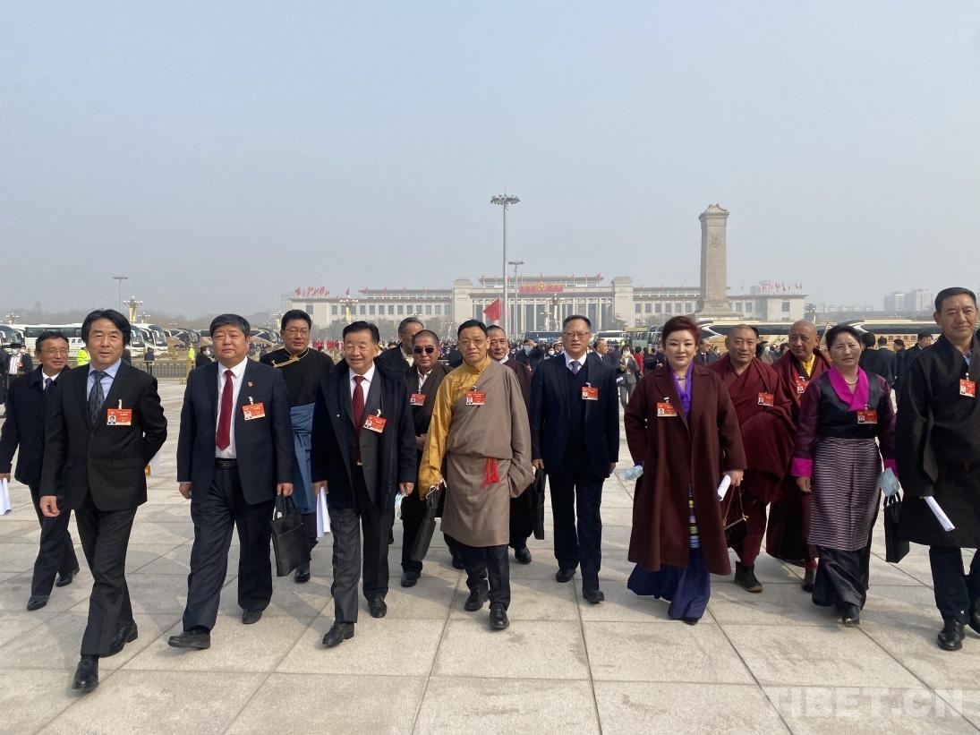 圖為扎西委員和西藏自治區(qū)代表委員們一同步入會(huì)場(chǎng)