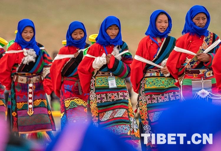 圖為7月25日,班戈縣第七屆納木錯(cuò)文化旅游民俗風(fēng)情賽馬藝術(shù)節(jié)開幕式上的文藝表演 攝影:王媛媛