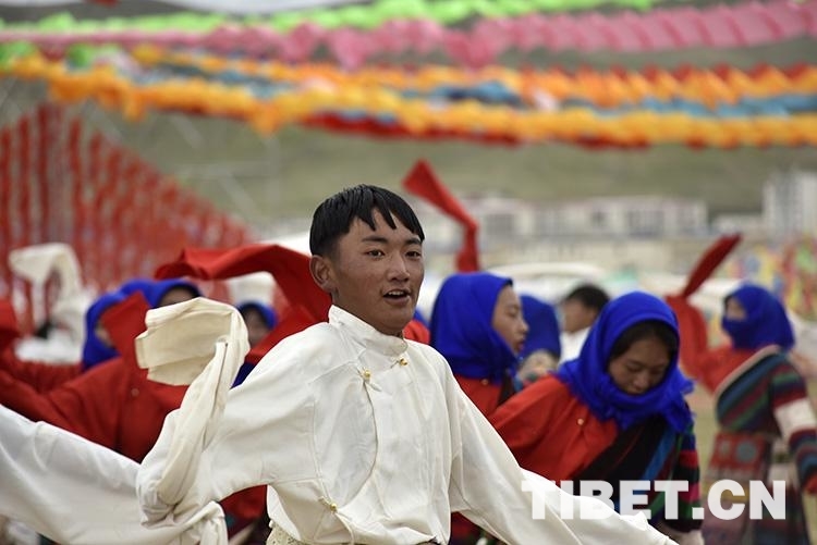 圖為7月25日,班戈縣第七屆納木錯(cuò)文化旅游民俗風(fēng)情賽馬藝術(shù)節(jié)開幕式上的文藝表演 攝影:趙耀