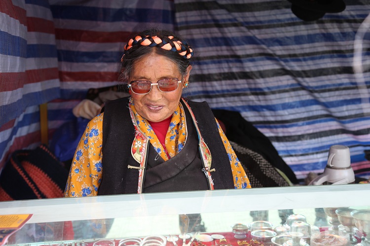 已近古稀之年的羅布和央金從1992年起,便年年參加打隆物交會??钍蕉?、口碑好,純手工鍛造,再加上30年的堅(jiān)守。讓他們經(jīng)營民族首飾的攤位成為了打隆物交會的必去“打卡地”之一。