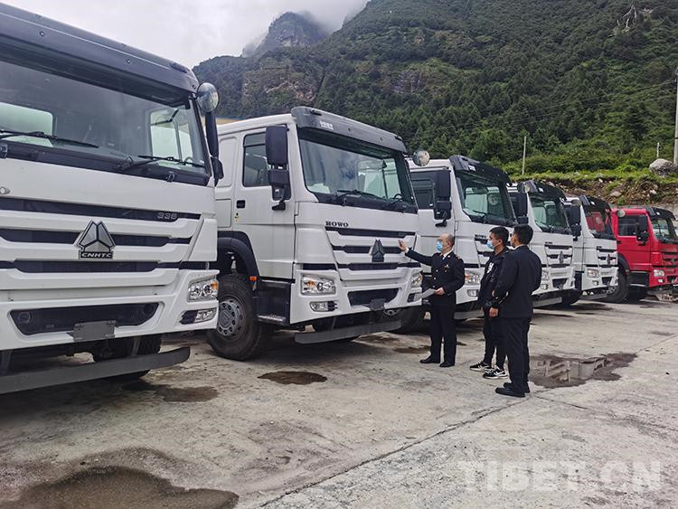 圖為拉薩海關(guān)關(guān)員監(jiān)管出口車(chē)輛 圖片由拉薩海關(guān)提供