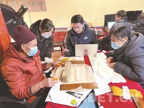 圖為工作人員對古籍文獻(xiàn)進(jìn)行登記、整理、分類、對勘 西藏自治區(qū)文物局供圖