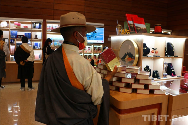 圖為西藏基層干部觀看文創(chuàng)產(chǎn)品 攝影:許娜