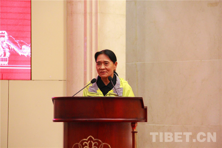 圖為西藏自治區(qū)人大常委會(huì)原副主任嘎瑪發(fā)表感言 攝影:王茜
