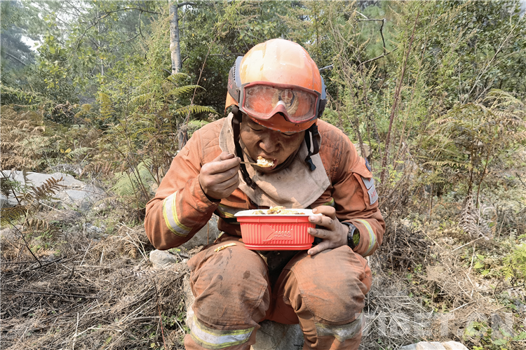 昌都市森林消防支隊(duì)卡若區(qū)中隊(duì)負(fù)責(zé)清理火場(chǎng)南側(cè)面積最廣的區(qū)域,由于情況緊急,火場(chǎng)坡度接近80°,加上每名消防員負(fù)重20公斤以上,指戰(zhàn)員們出發(fā)時(shí)只帶了滅火裝備和少量的飲用水,忍饑挨餓,每日連續(xù)奮戰(zhàn)將近10小時(shí)以上。期間,他們婉拒了好幾撥主動(dòng)來(lái)送水、送干糧的群眾。