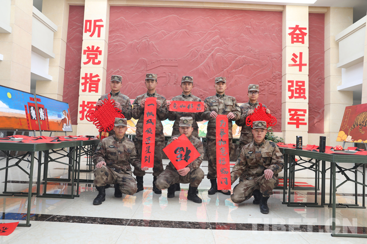 過年貼春聯(lián),是中華民族的傳統(tǒng)習(xí)俗之一,增加過年氛圍的同時(shí),也表達(dá)了官兵對(duì)新年美好的祝福。春聯(lián),又稱“春貼”“門對(duì)”“對(duì)聯(lián)”,是過年時(shí)所貼的紅色喜慶元素,它以對(duì)仗工整、簡(jiǎn)潔精巧的文字描繪美好形象,抒發(fā)美好愿望,是中國(guó)特有的文學(xué)形式,是中華民族過年的重要習(xí)俗。